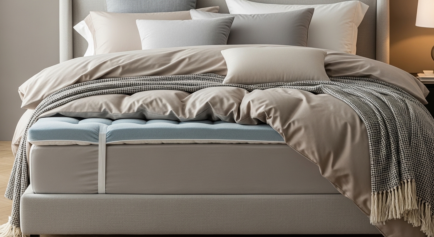 Wool toppers bring natural breathability and plush softness, reducing pressure points without trapping heat.